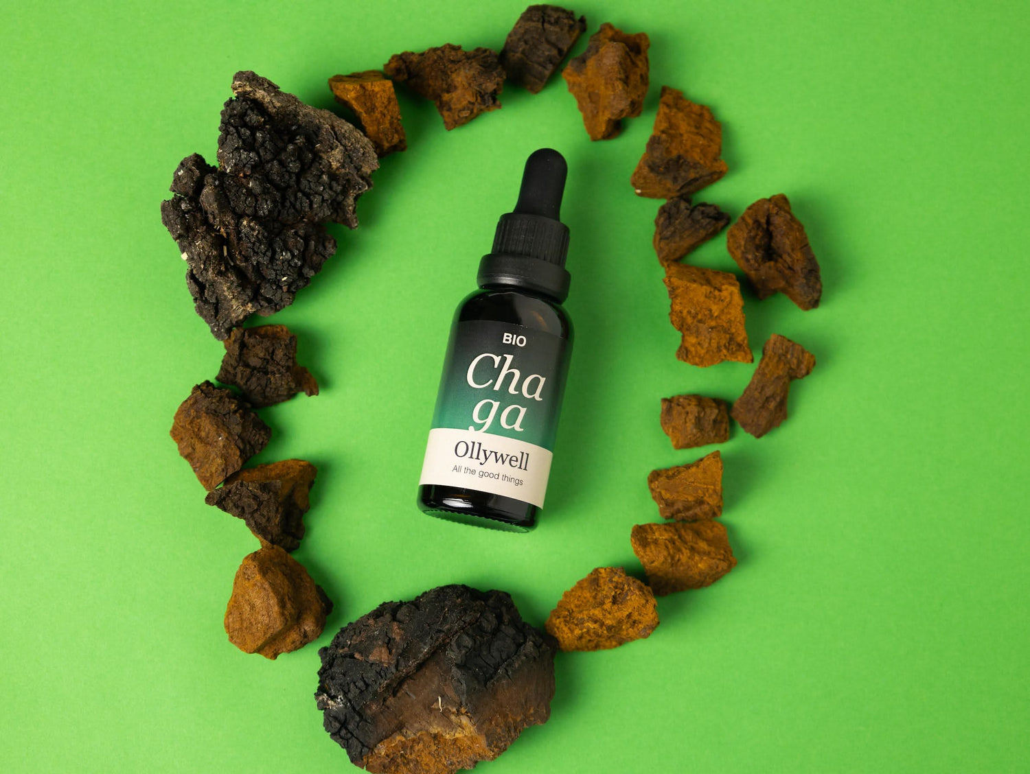 Chaga supporta il mio sistema immunitario e grazie a esso rimango in salute tutto l'anno. I migliori estratti provengono da Ollywell.