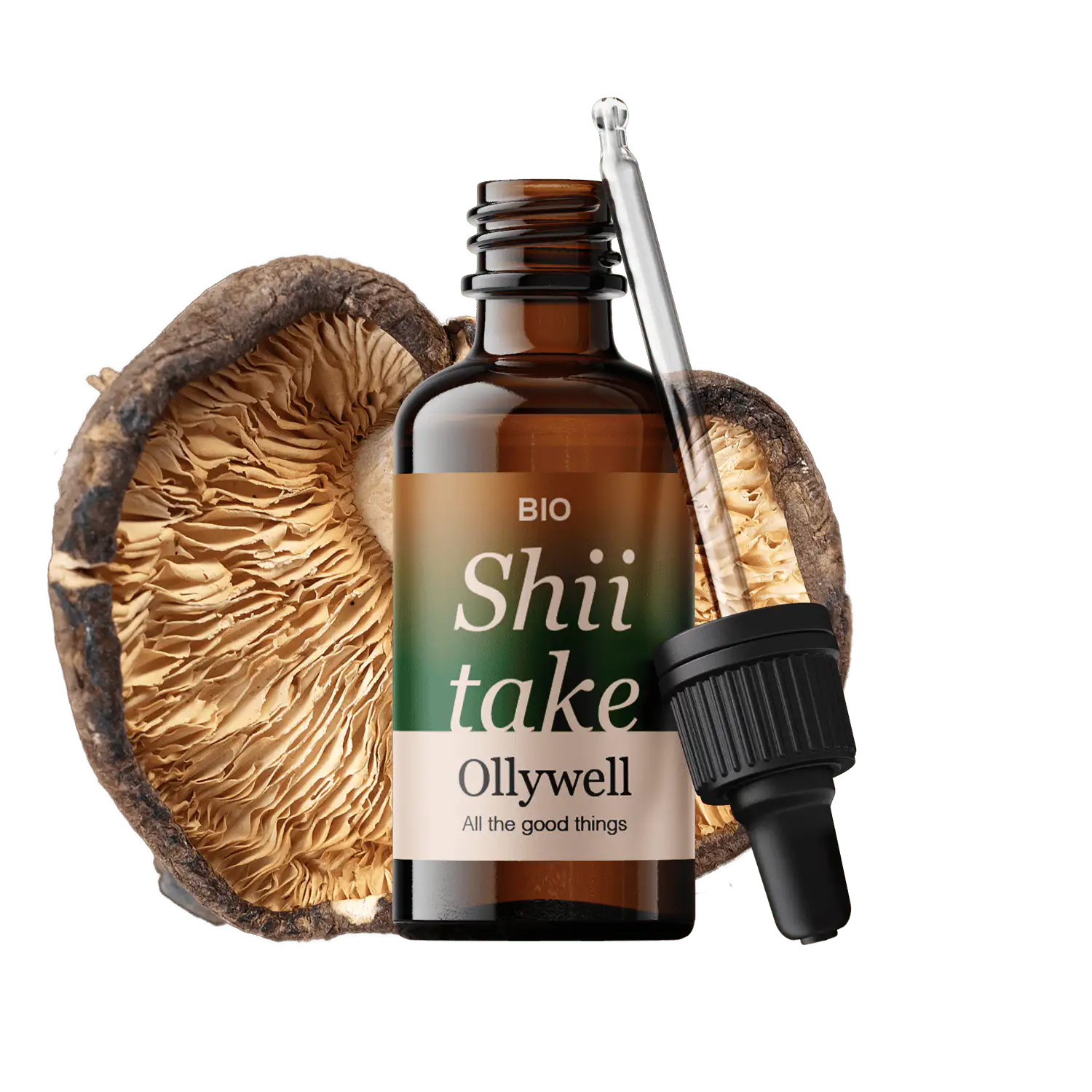 Produciamo il nostro estratto esclusivamente da corpi fruttiferi, accuratamente lavorati per garantire un'alta concentrazione di Shiitake in una pratica bottiglia da 30 ml.